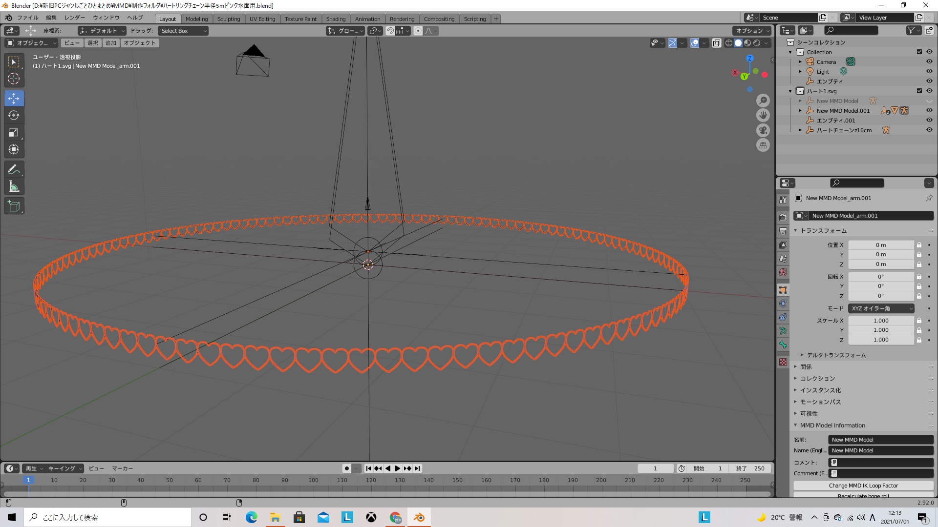 作品名:モデリングしたハート型チェーンをMMDに配置してみた