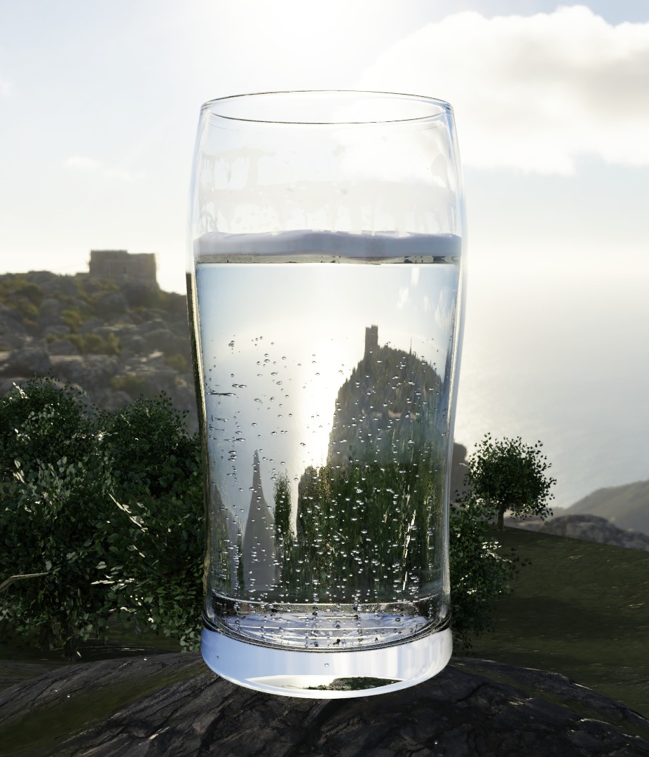 ビールグラスをモデリングしていく中で基本的な手順とショートカット、ツールパネルの各内容の理解を深める事ができた。ビールの気泡はビアグラスの内側の底の形に合わせた形状のメッシュ(面)をグラスの底に作成し、そのメッシュを気泡の発生源(エミッター)に設定した。気泡の粒はICO球(三角形面からなる多面体)を作り、それをパーティクルのオブジェクトに指定した。(※パーティクルとは、メッシュオブジェクトから放射される無数のアイテムの事を指す)ビアグラスに張り付いた泡は2Dで作成された泡のテクスチャを円筒状にUV展開(3Dオブジェクトの表面に貼り付ける画像(テクスチャ)の位置を決める作業)して設定した。