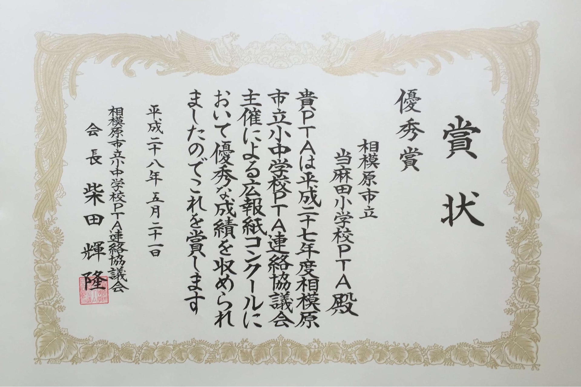 また、本年度の広報委員の広報誌が市の広報誌コンクールで優秀賞を受賞。
